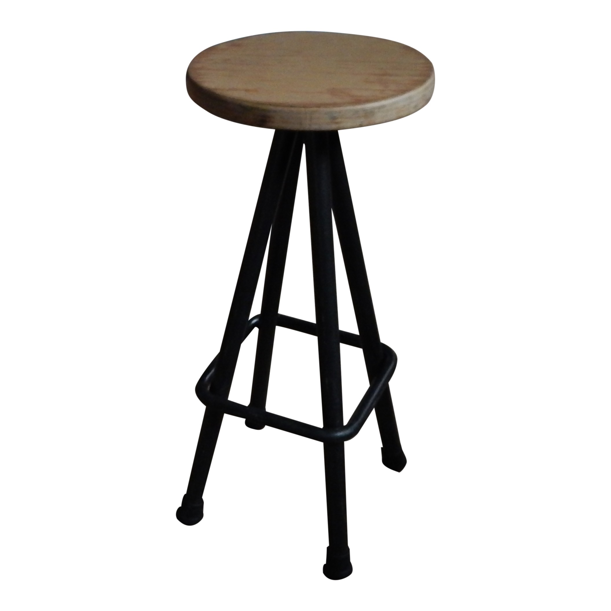 Industriële barkruk met metaal frame en rond blank houten zitting. Hiermee kunt u lekker zitten aan een statafel.