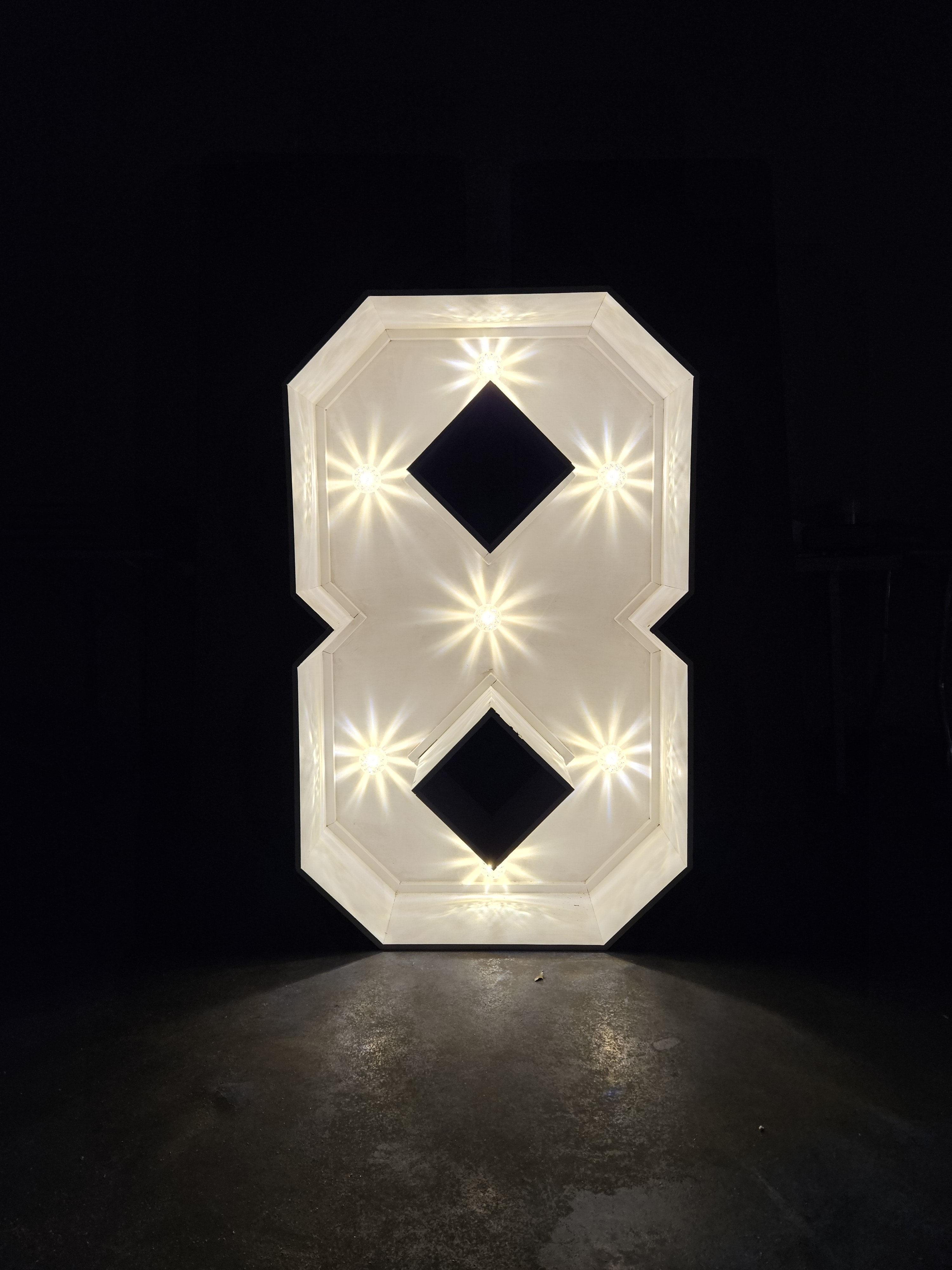 De letters / cijfers zijn 120x75x30cm.