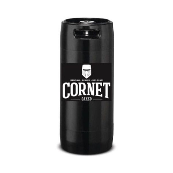 De Cornet Oaked (8,5% alcohol) in een 20 liter fust is een krachtig Belgisch blond bier dat bekendstaat om zijn subtiele vanilletoets door de rijping op eikenhouten snippers.