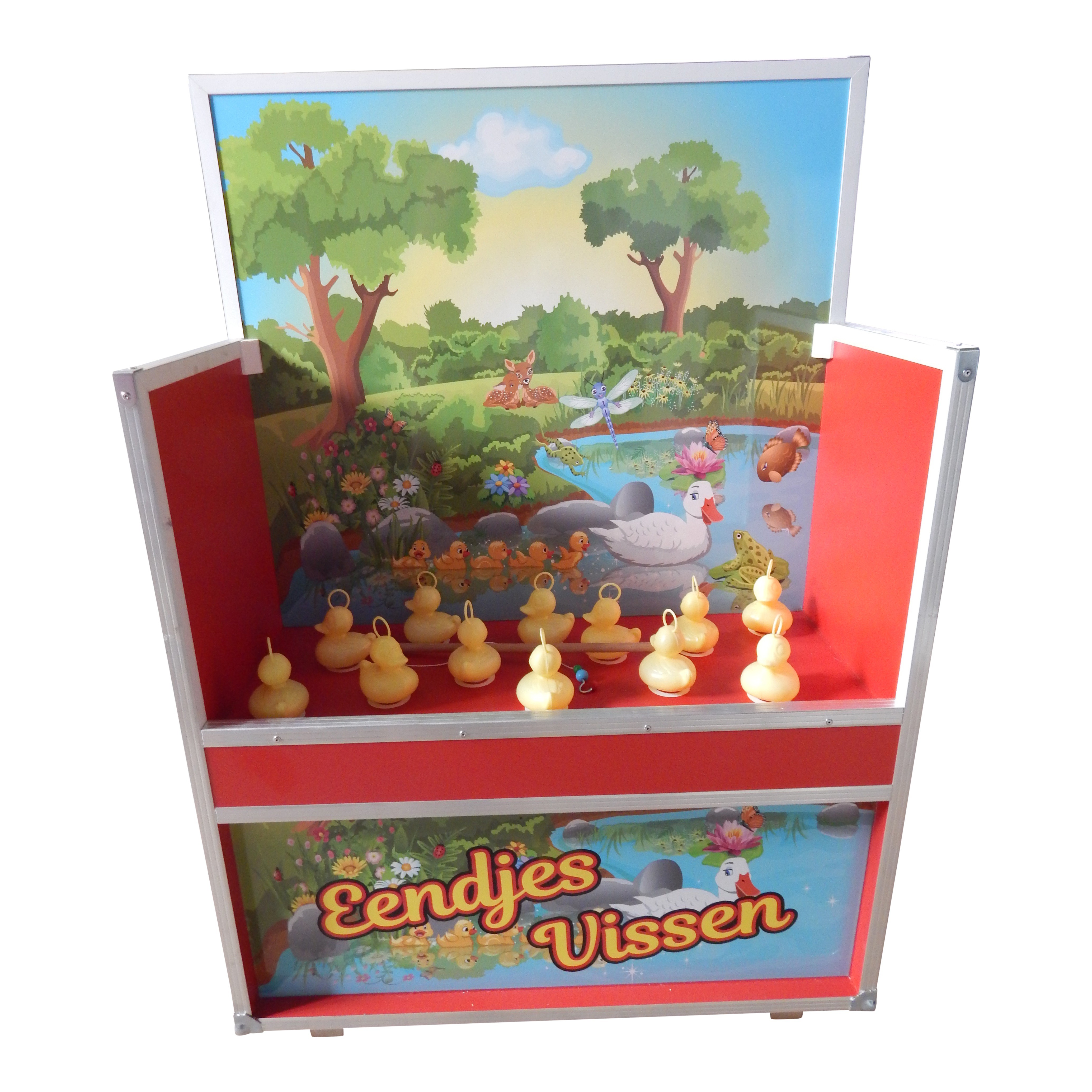 Een leuk traditioneel spel in een handige “droge” versie. Geen water nodig en toch plezier voor iedereen. Compleet speelklaar met 12 degelijke eenden en een hengel.