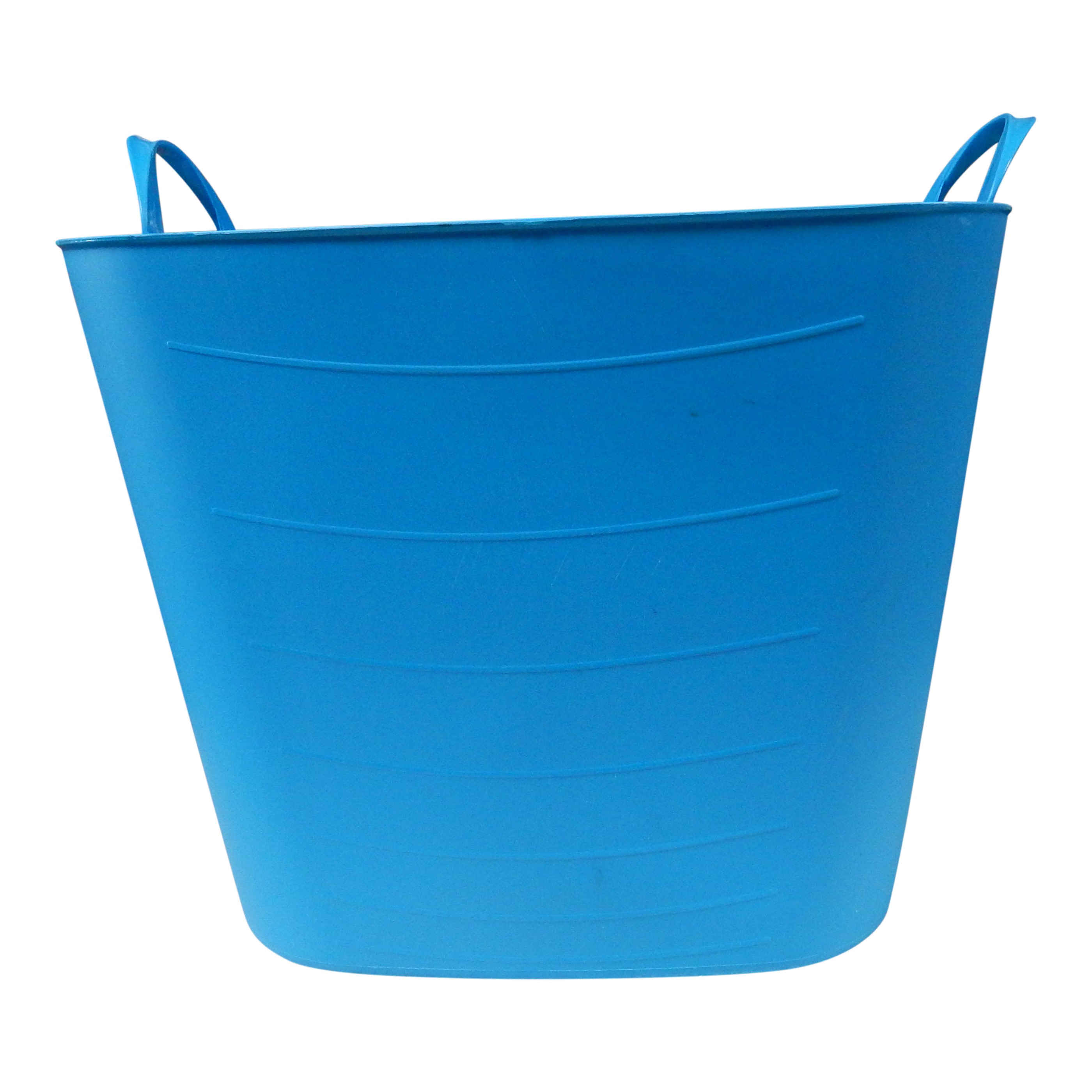 Grote flexibele blauwe mand van kuststof om als decoratie neer te zetten maar ook goed te gebruiken om flessen en blikjes in koel te houden met ijsklontjes.