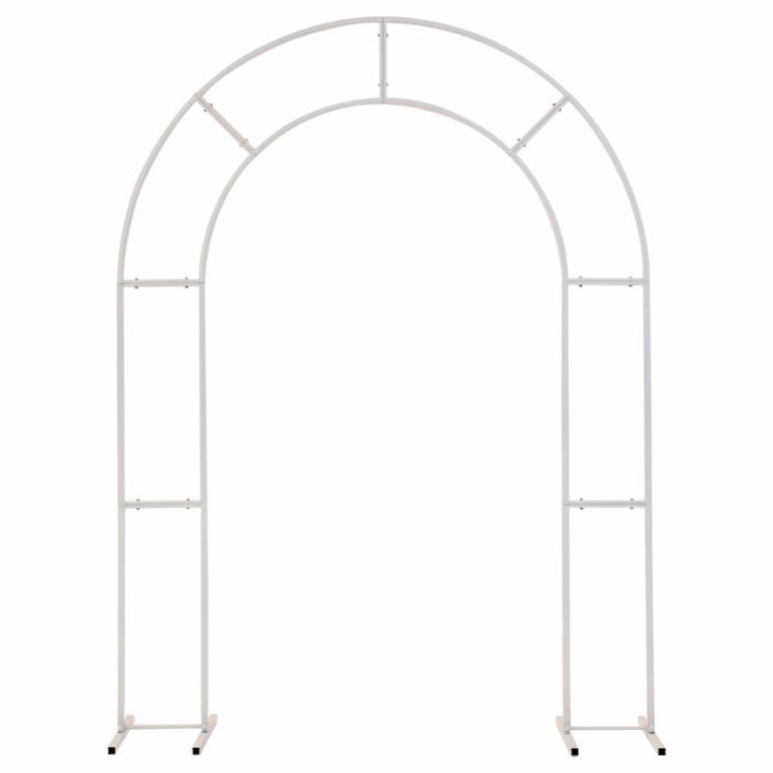 Transformeer de locatie met dit witte frame in de vorm van een boog. Het maakt een verbluffende eyecatcher om op een evenement of feest weer te geven of om te gebruiken als een decoratieve bruiloftsbackdrop.