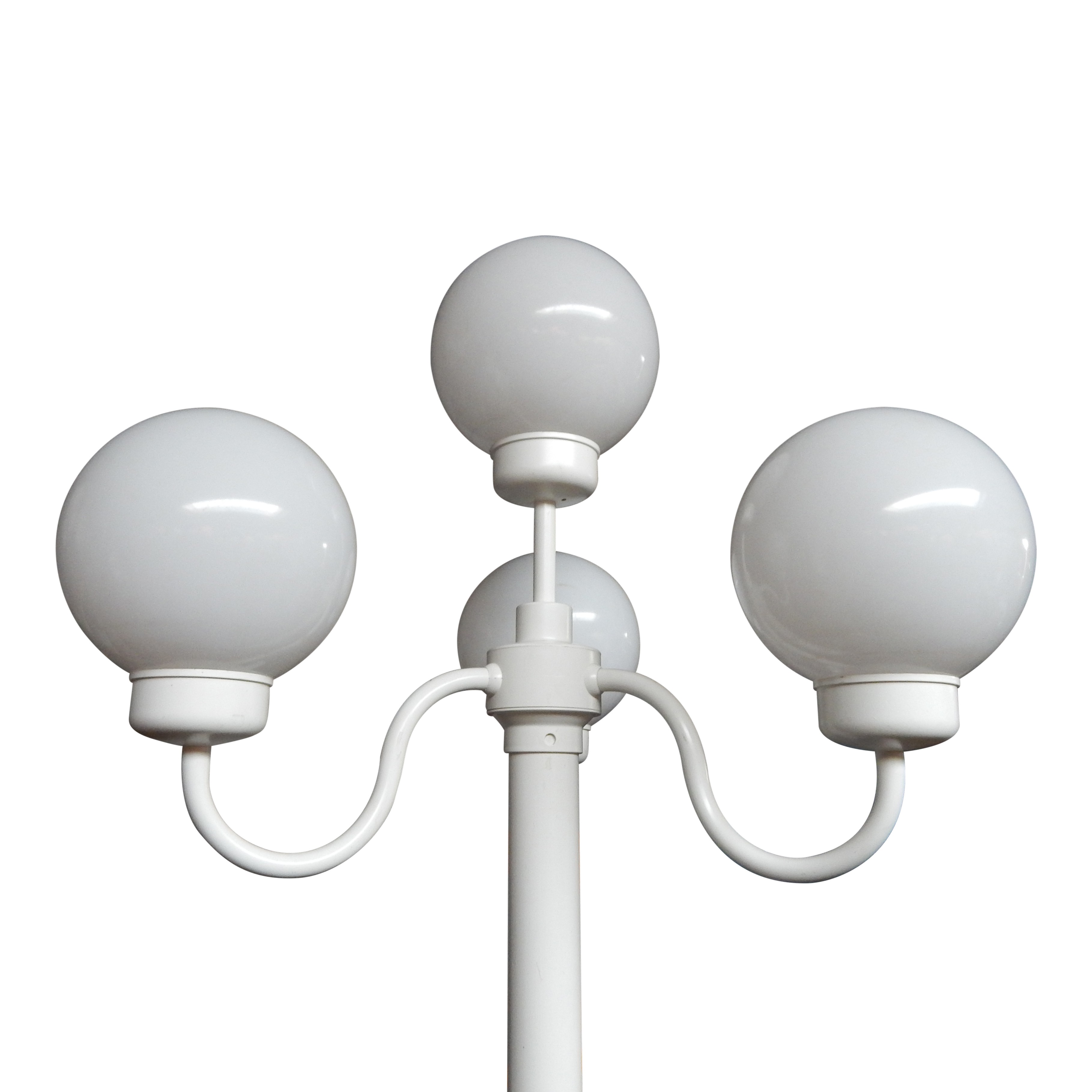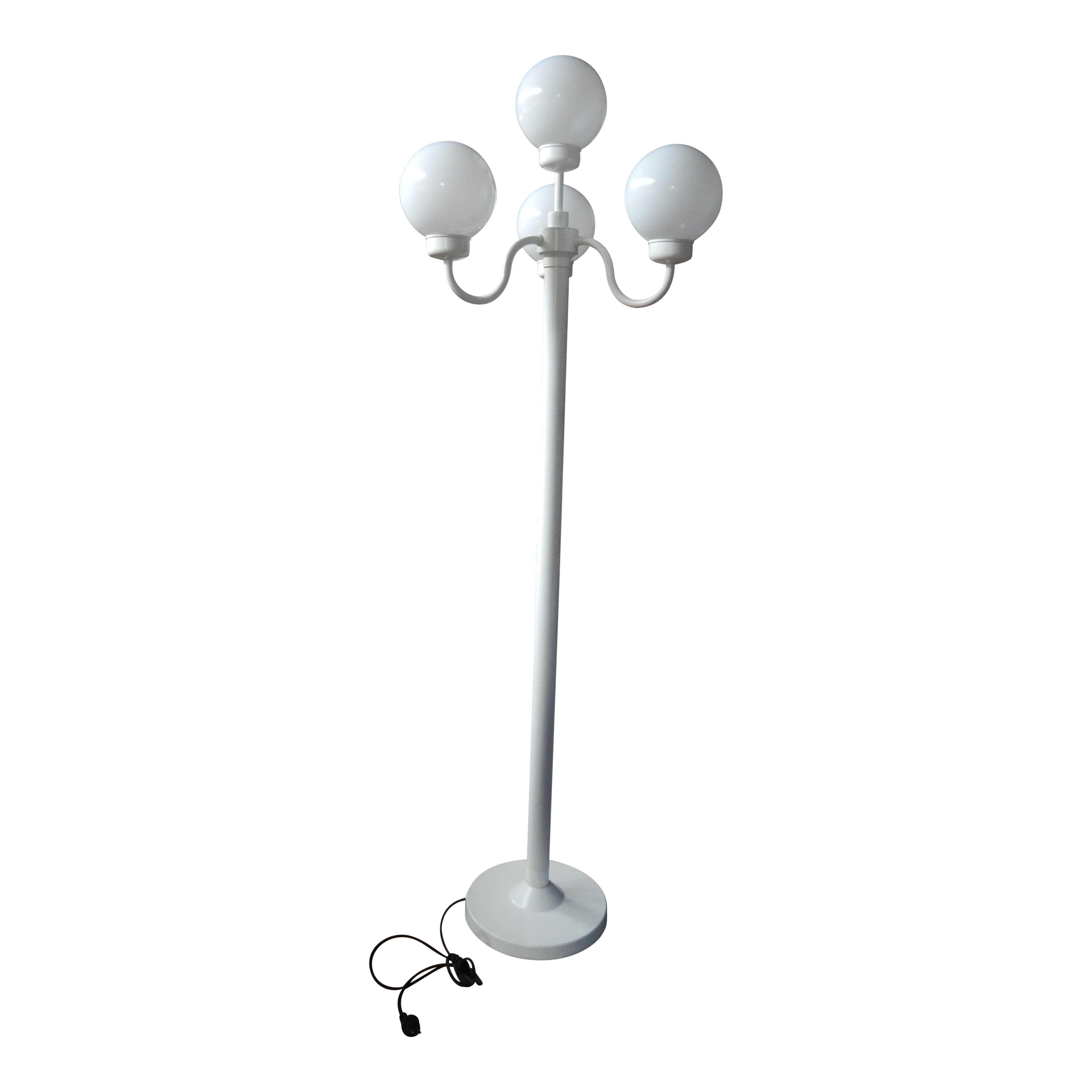 Franse witte lantaarn voorzien van 4 bollen op voet voorzien van kabel om deze op 220volt aan te sluiten.