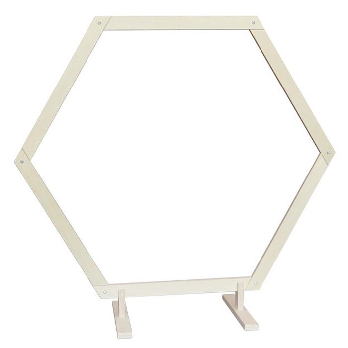 Pinterest staat er vol mee! Deze houten backdrop frame hexagon large is een musthave voor jullie ceremonie of fotoshoot. Decoreer het frame met macramé, bloemen met pampasgras of lange witte linten die dansen in de wind.