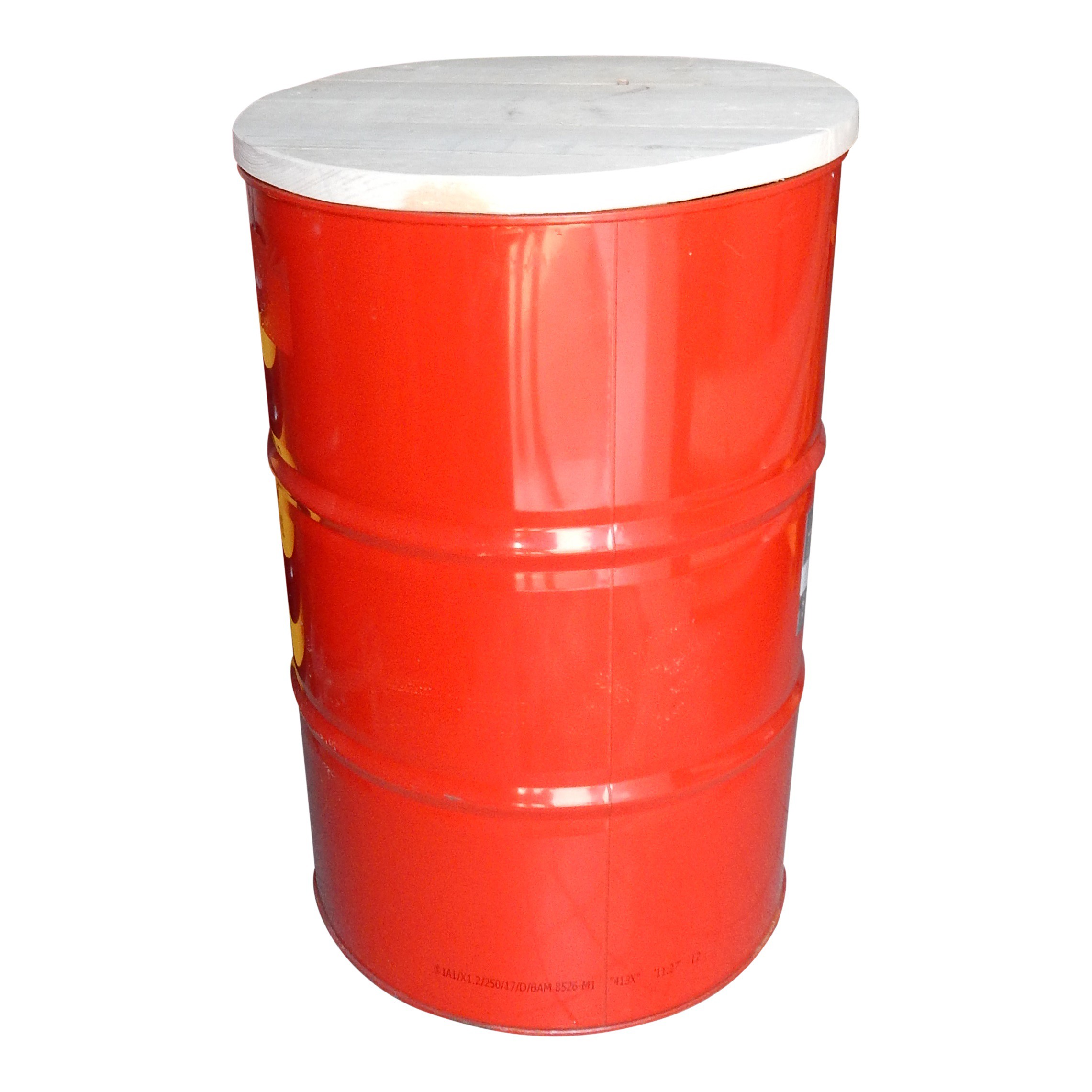 Voor de feesten die een haven/ industrieële uitstraling hebben, oliedrums 105 cm hoog voorzien van steigerhout blad met een doorsnee van 59 cm. Staat erg goed en weegt relatief weinig.