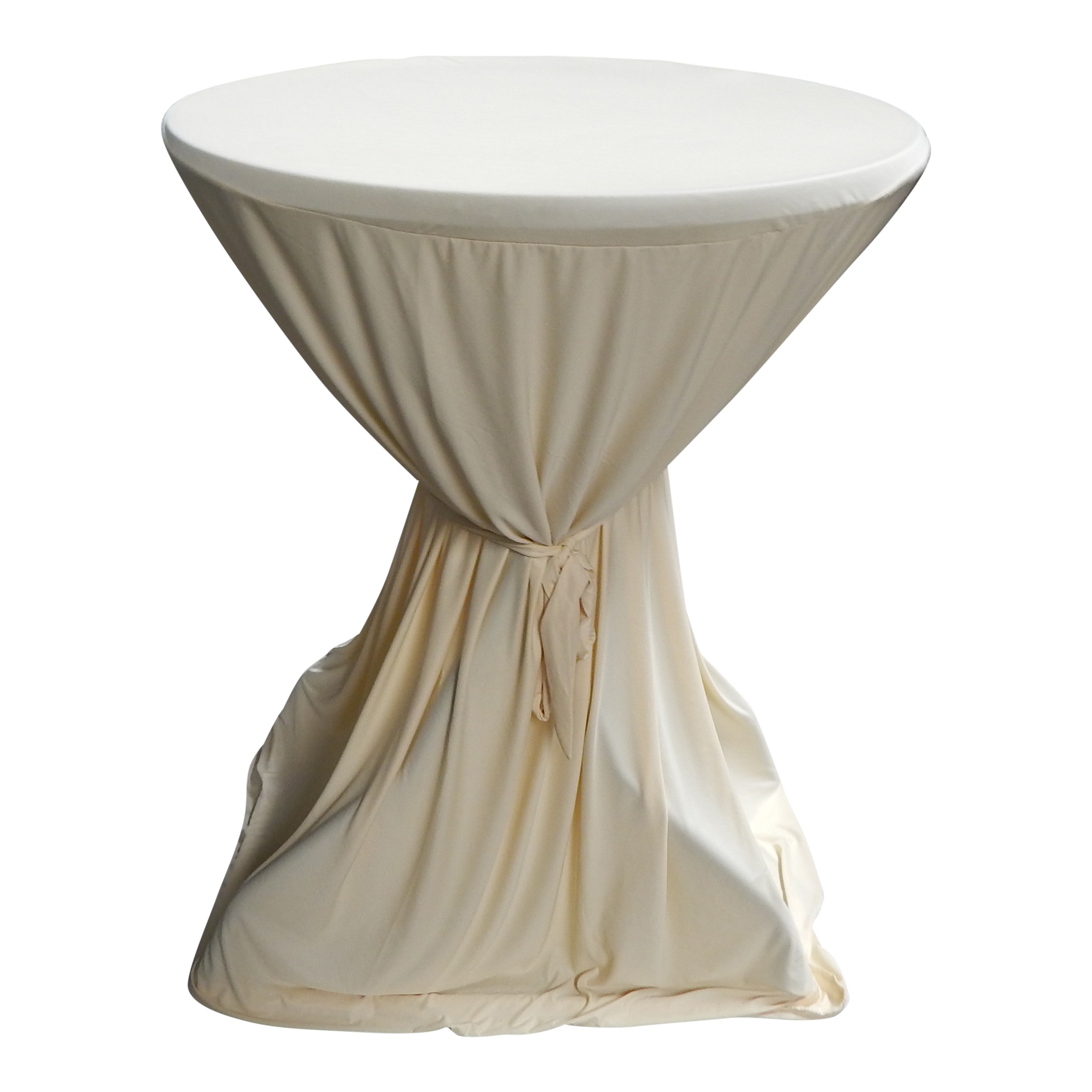 Deze ecru / gebroken witte statafelhoes past om alle statafels met rond blad die wij in ons assortiment hebben.