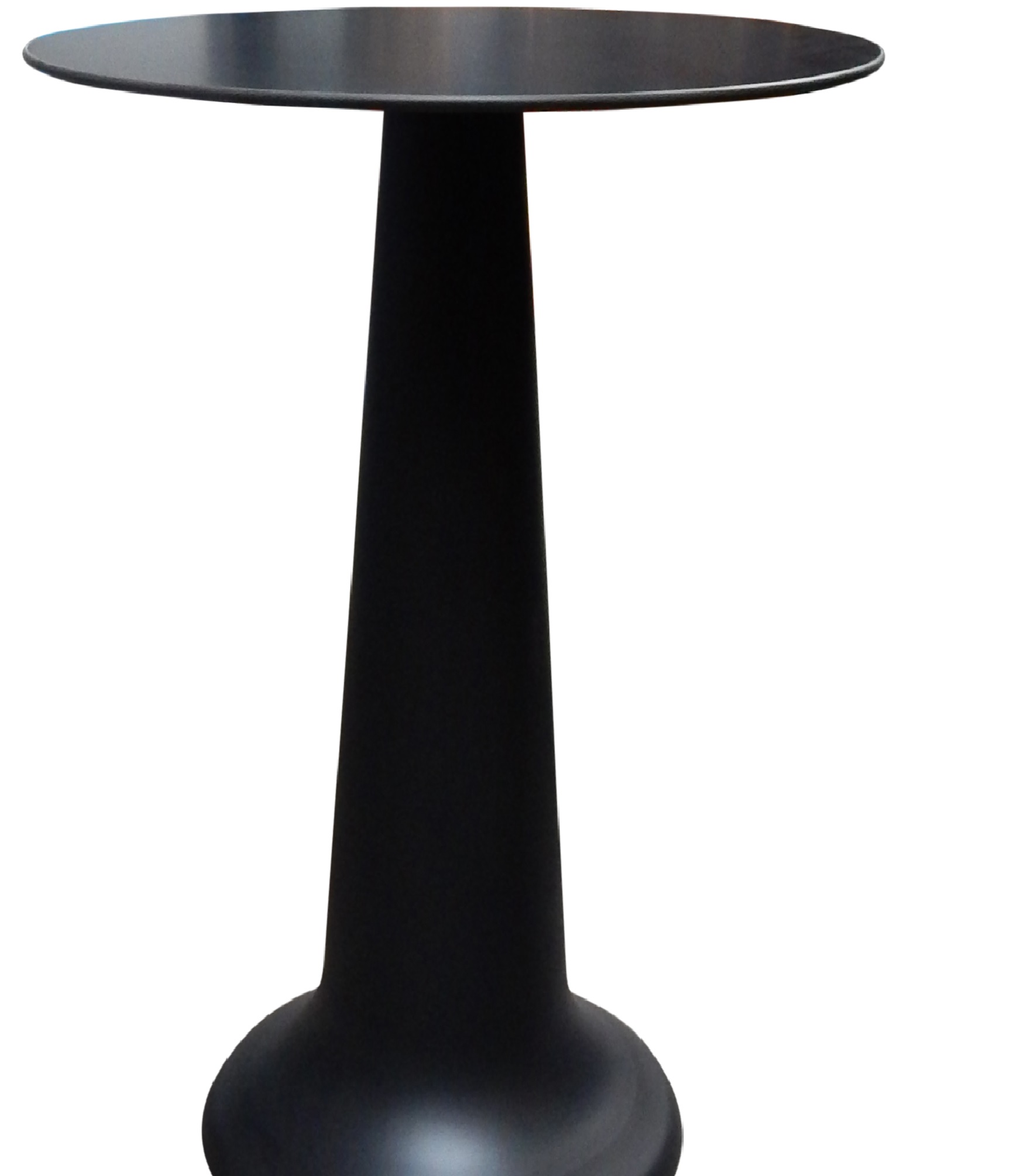 Door zijn conische voet en zijn ronde zwarte blad is deze statafel een strakke maar efficiënte waarde op uw event.
